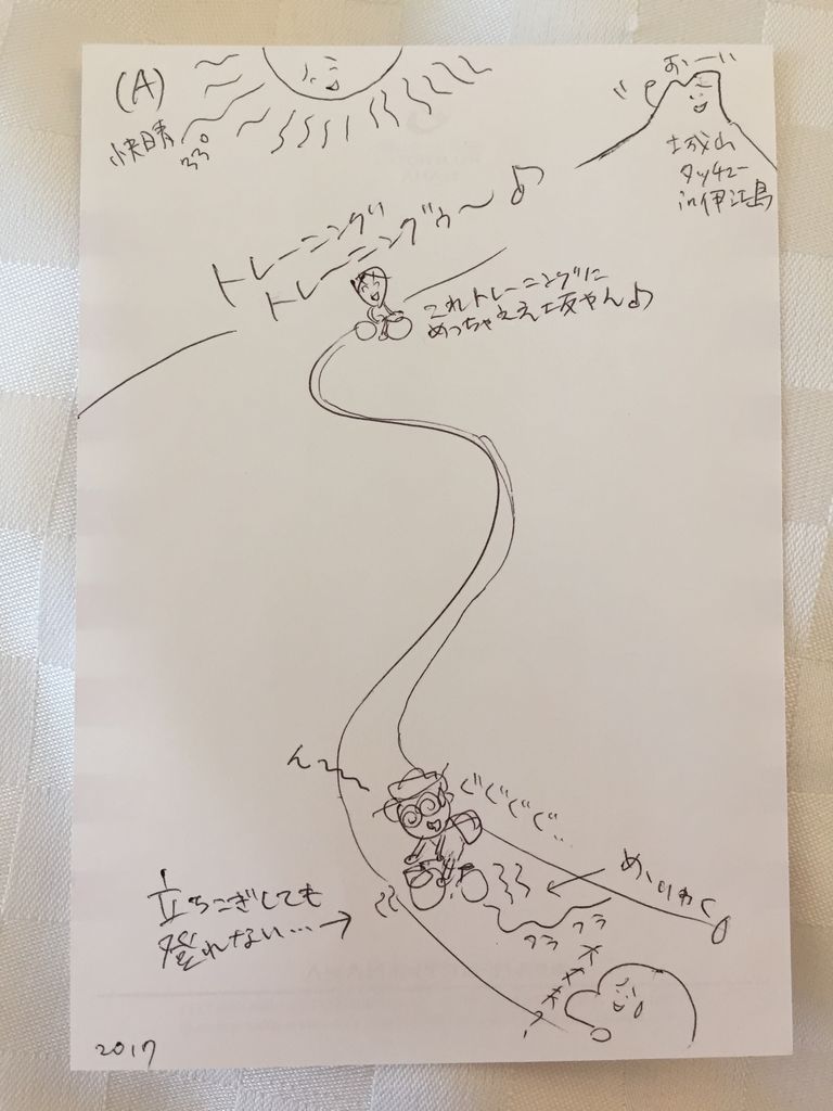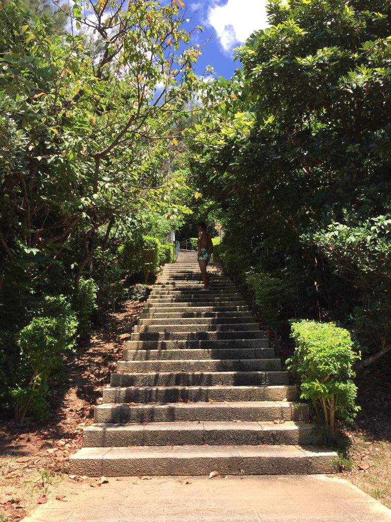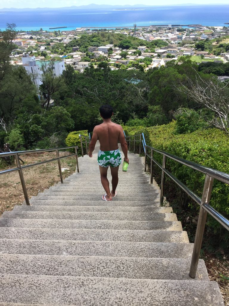 しかし、先に到着した家人は、山の中腹にある展望からこちらを見下ろし「前だけを見て登るんやあ!後ろには絶景が広がってんで。てっぺんで見たら感動すんで。だから振り向かず前だけを見るんやあ♪」「……(ー ー;)」日差しの強さにめまいを感じながら頭の中には、ロッキーが階段を駆け上がるトレーニングシーン…。確かに友人たちの言う通り、何かがおかしい…。ロッキーちゃうわー!とツッコミ返したかったけど息が切れて声がかすれて言葉にならない。